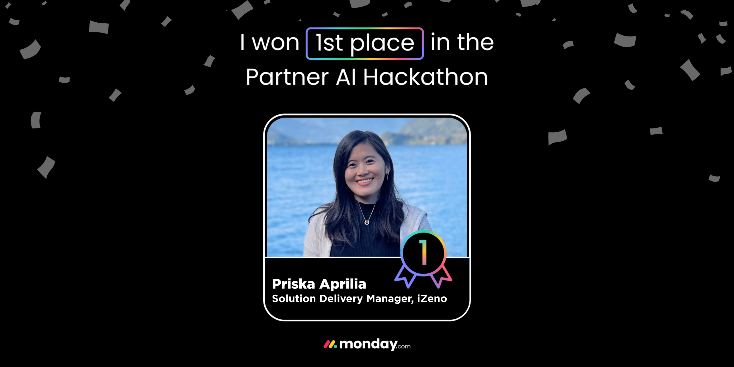 iZeno won 1st place at the monday.com Partner AI Hackathon 2025, represented by Priska Aprilia from our monday.com practice team. This recognition highlights iZeno’s continued focus on delivering AI-driven workflow automation solutions that help organizations improve efficiency, accuracy, and operational performance using monday.com.